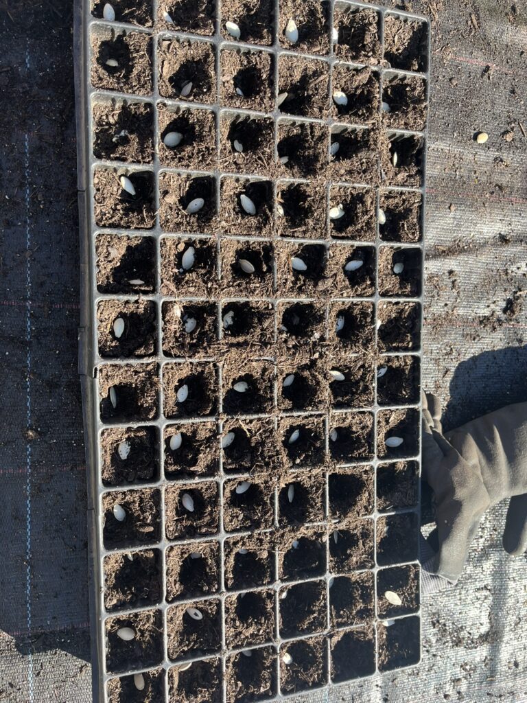Vorbereitung für die Vorkultur (Zucchini- und Kürbiskerne)