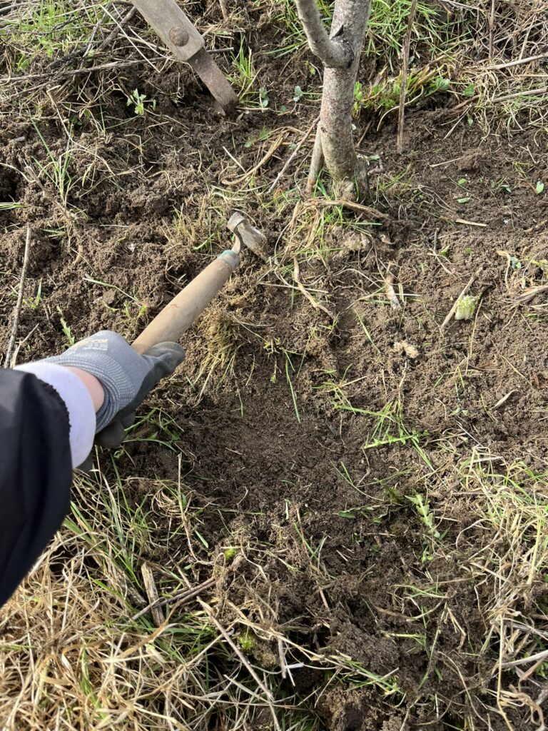 Baumscheiben für Aprikosen- und Pfirsichbäume freilegen