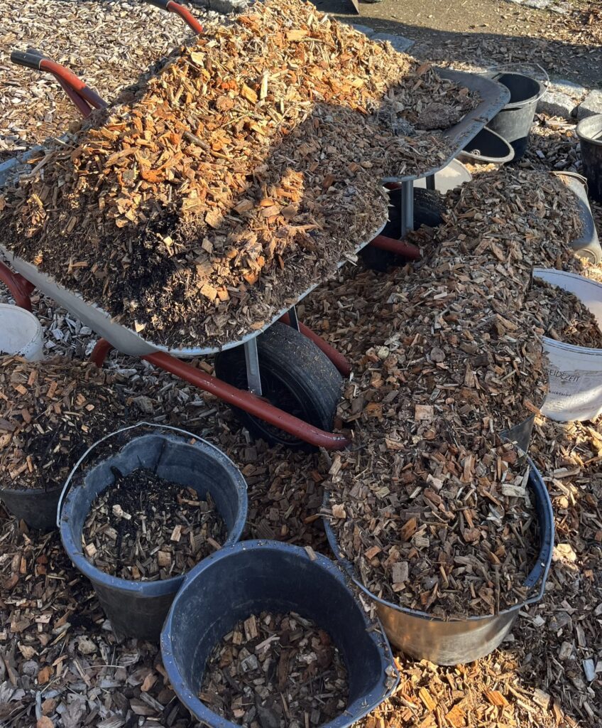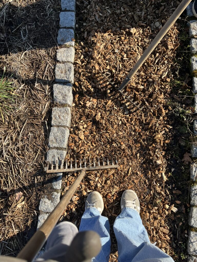 Rindenmulch verteilen