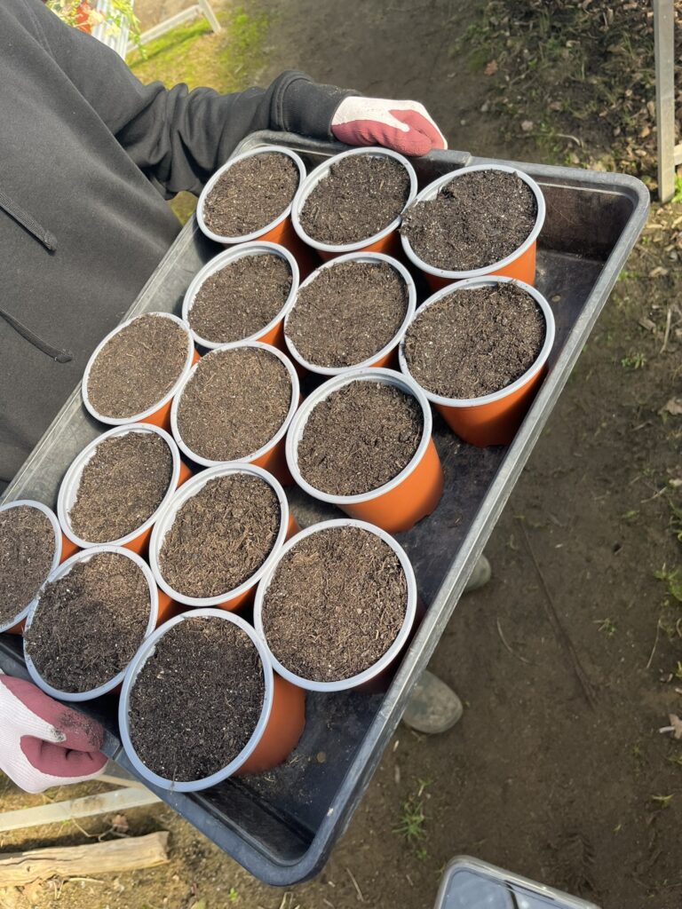 Knoblauch im Folientunnel gesetzt (Wühlmaus-Schutz!)